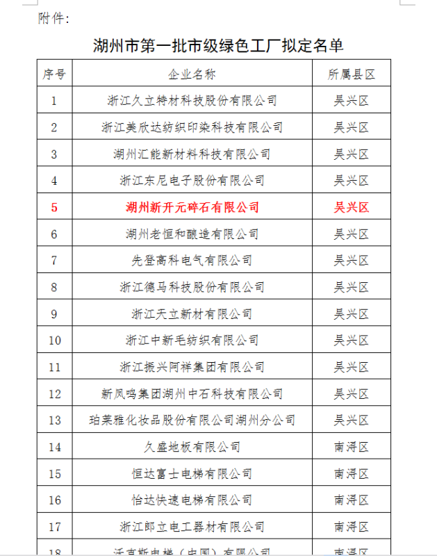 新開元作為湖州市生態(tài)文明標(biāo)準(zhǔn)化示范點單位,致力于打造“花園式”礦山,成為了廠區(qū)如景區(qū)的現(xiàn)代化工廠,公司入選為湖州市第一批市級綠色工廠。